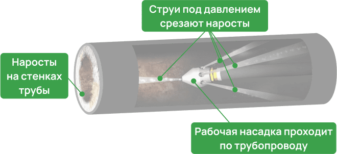 Гидродинамическая прочистка канализации - это метод, основанный на применении специализированного оборудования, способного обеспечить мощное воздействие струи воды под высоким давлением на стенки канализационных труб. Принцип метода заключается в использовании этого высокого давления для удаления и очистки отложений, загрязнений и прочих препятствий в канализационной системе.